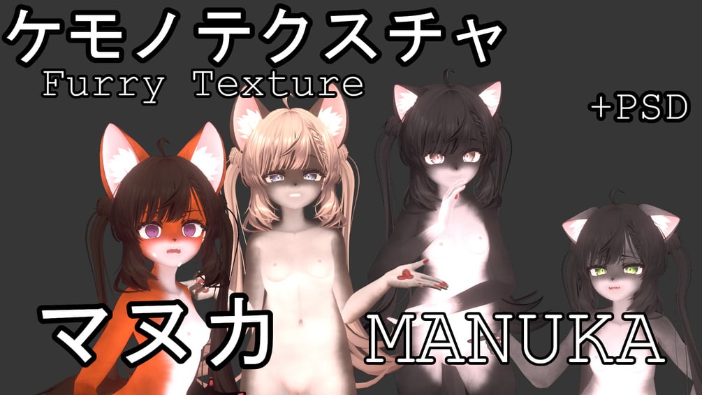 NOTE: original face and hair textures are not included. Materials in provided unitypackage compose original textures and furry ones. When using PSD file, put original textures at the very bottom of the layer stack.